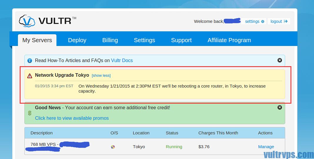 根据官方通知,日本东京机房网络升级,将于北京时间 22号 03:30重启路由器。原文: Network Upgrade Tokyo 01/20/15 3:34 …